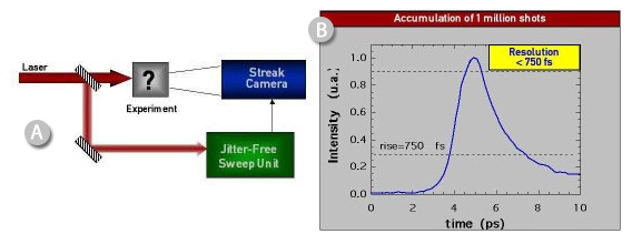 | ? | ![]() A – 只有一小部分激光能量用于觸發(fā)光電導(dǎo)開(kāi)關(guān),這允許對(duì)大量信號(hào)進(jìn)行平均 B – 超過(guò) 1 萬(wàn)次(~20 分鐘)的信號(hào)平均,時(shí)間分辨率仍為亞皮秒。 |