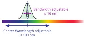 兩個可調諧濾光片允許單獨進行角度調節,這樣既可以實現中心波長的調節,也可以實現帶寬的調節。
